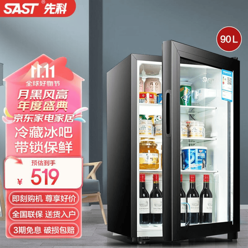1️⃣空间宽敞,冷藏力强大:这款先科90升冰吧冷藏柜,容量大到可以轻松容纳各种美食,无论是啤酒、水果、茶叶还是饮料,都能轻松放得下。而且,它的冷藏容积高达90升,相当于一个中等大小的冰箱,满足你的冷藏需求。