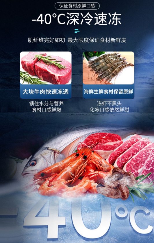 澳柯玛风冷无霜冷柜BC/BD-166WDHXF搭载立体环抱式风冷体系,经过躲藏式风道完结360°循环制冷,凉气均匀直达每个旮旯,真实的完结“零结霜”,从此离别耗时吃力的除霜劳动,食材耐久新鲜不粘连。 职业抢先的-40℃深冷速冻技能更完结 细胞级锁鲜,瞬间锁住食材细胞活性与原生养分,无论是宝贵海鲜、高档牛排,仍是母乳、冰淇淋,口感与养分均如初封存。